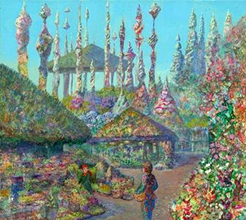 Pour les amateurs du studio Ghibli, l'artiste est plus connu pour avoir travaillé sur les décors des séquences d'onirisme du film Mimi wo Sumaseba (Si tu tends l'oreille) de Yoshifumi Kondô. Son style pictural a depuis été réutilisé pour les décors du court métrage Hoshi wo Katta Hi (Le jour où j'ai acheté une étoile) réalisé par Hayao Miyazaki en 2006 pour le musée Ghibli.