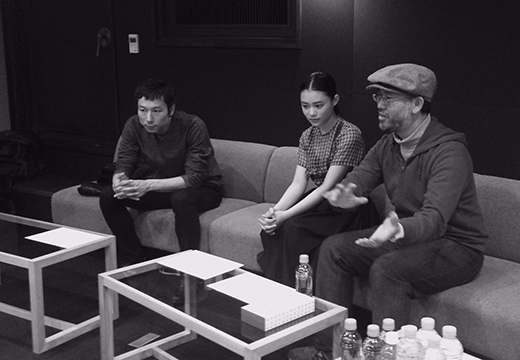 Le producteur Yoshiaki Nishimura et le réalisateur Hiromasa Yonebayashi accompagnés de l'actrice Hana Sugisaki (Mary).