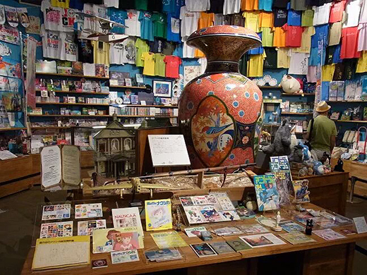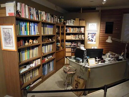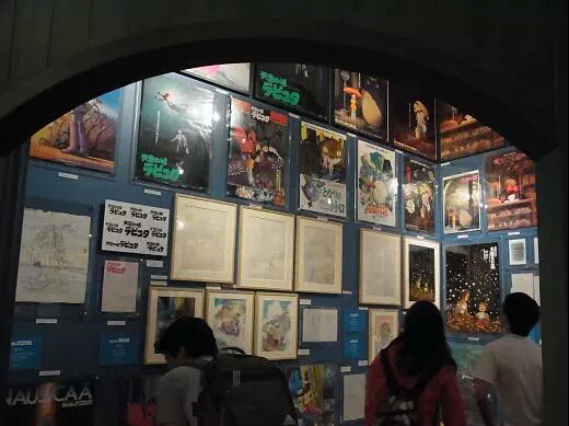 Voici différentes photos de l'exposition. Le cliché d'un bureau de travail s'est glissé parmi elles : il s'agit de la reproduction de celui du producteur Toshio Suzuki, aux couleurs de l'équipe de Baseball des Chûnichi Dragons, dont l'ancien producteur est un grand admirateur.