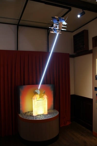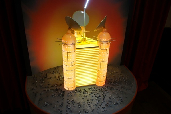 Dans la deuxième salle d'exposition, le visiteur retrouve une maquette de l’île d’Edenia puis d’Industria, sur laquelle s’abat le puissant rayon d’un satellite nourrit à l’énergie solaire.