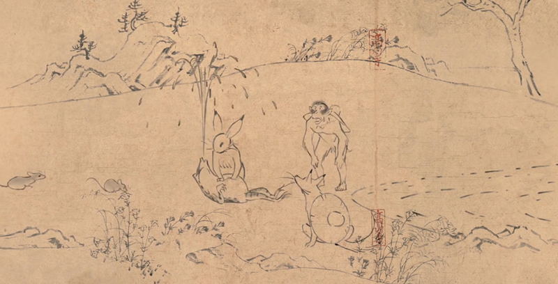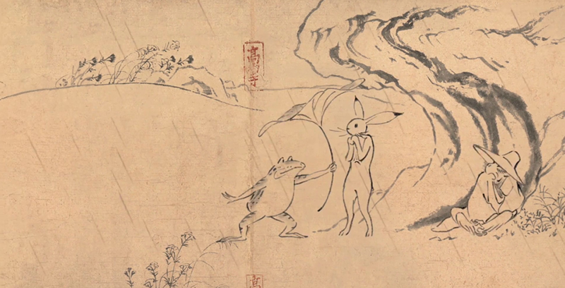 Nouvelle publicité produite par le studio Ghibli, basée sur l'emaki (rouleaux narratifs peints japonais) Chôjû-giga datant du 12ᵉ siècle.