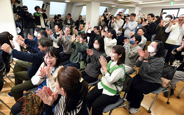 L'équipe du studio Ghibli à l'annonce du titre du film récompensé.