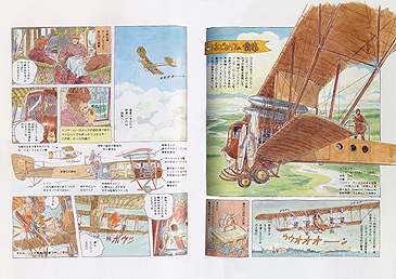 Kûchû de Oshokuji (Dîner dans les airs) est un manga à l'aquarelle de 8 pages dans lequel Hayao Miyazaki raconte l'histoire du repas en avion de 1914 à nos jours.