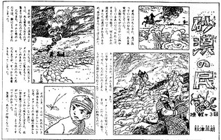 Sources : Nausicaa.net - Ghibli Blog qui propose par ailleurs une traduction intégrale du manga en anglais, Miyazaki's First Manga - People of the Desert (Sabaku no Tami)
