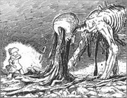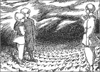 Nausicaä ressent alors l’arrivée des Ômu et part à leur rencontre. C’est alors que le Néant la submerge à nouveau pour lui rappeler que ce fongus est le seul moyen de sauver la terre, constamment menacée par les hommes et leurs pulsions destructrices. Il rappelle également à Nausicaä qu’elle-même a tué et n’est pas innocente. Nausicaä décide alors de suivre jusqu’au bout le destin tragique des insectes. Elle monte sur le dos d’un Ômu et remarque que ce dernier n’éprouve aucune haine envers les humains. Il se rend vers la mort afin surtout de panser les blessures de la terre, dans un esprit paisible et serein. En arrivant au point de rencontre des fongus, elle se rend compte que les germes de la forêt ont déjà poussé, comme une réaction accélérée due au mélange du fongus et du corps des Ômu. Alors que le fongus s’apprête à se déverser sur elle, elle est avalée par un Ômu et disparaît...