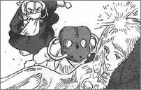 À bord du vaisseau royal, maître Yupa réussit à s’échapper en provoquant un véritable carnage chez les Hidolas. L’empereur ne s’en inquiète pas réellement et reconnaît alors à ses côtés l’esprit errant de son frère Miralupa. Ce dernier semble errer comme une âme en peine jusqu’à ce qu’il aperçoive Nausicaä au loin, dans la jarre volante. Son esprit parvient alors à se propulser dans le corps de la princesse. Selm fait atterrir en urgence leur engin volant et c’est médusé que Chalka aperçoit le vaisseau de l’empereur tiré sur ses propres troupes. En effet, l’empereur semble avoir décidé d’éliminer tous les alliés des bonzes afin de créer son propre pouvoir. Chalka décide de partir en laissant Nausicaä au soin de Chikuku et Selm.