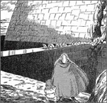 Le roi Vuh et son fou sont accueillis par l’ordre religieux qui s’occupe du cimetière. Les hommes qui composent cette caste cherchent un nouveau souverain pour protéger le tombeau et le savoir qu’il renferme. Avide de pouvoir et d’immortalité, le roi pénètre dans le tombeau. Le Gunship, à proximité de l’explosion, se crashe au sommet du tombeau et Asbel y pénètre, découvrant un monde horrifique où les Hidolas sont nourris de cadavres, où les moines croupissent à force de vieillesse prolongée. Nausicaä arrive elle aussi, accompagnée de ses fidèles hommes-vers et rejoint le roi Tolmèque auprès d’une gigantesque sphère recouverte d’écriture sacrée. Les moines leur apprennent qu’il s’agit du maître du cimetière, détenteur de tous les savoirs. Chaque année, une nouvelle phrase apparaît, permettant aux moines d’accéder à la sagesse universelle.