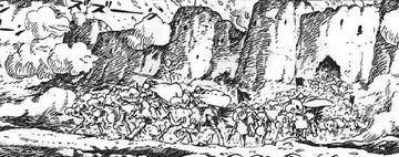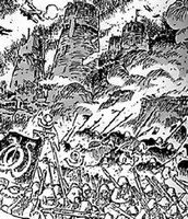 Malgré des effectifs très amoindris, Kushana et Nausicaä décident de continuer vers les territoires Dorks. Arrivées dans la province de Sappata, elles s’aperçoivent que les Dorks emploient l’usage des spores pour combattre les Tolmèques, au risque de condamner leur propre population civile. Elles réussissent à rejoindre les cavaliers du 3ᵉ bataillon de l’armée Tolmèque abandonnés par le reste de l’armée et en proie à un siège des Dorks. Kushana, grâce à l’aide de Nausicaä, réussit à mettre en place une percée et à détruire les canons qui menaçaient continuellement le fort. Miralupa, effrayé par cette dernière et furieux de cette victoire, choisit alors d’envoyer les spores et les insectes sur Sappata mais l’expérience scientifique dérape, provoquant la folie des insectes et une extension dangereuse de cette création Dork.