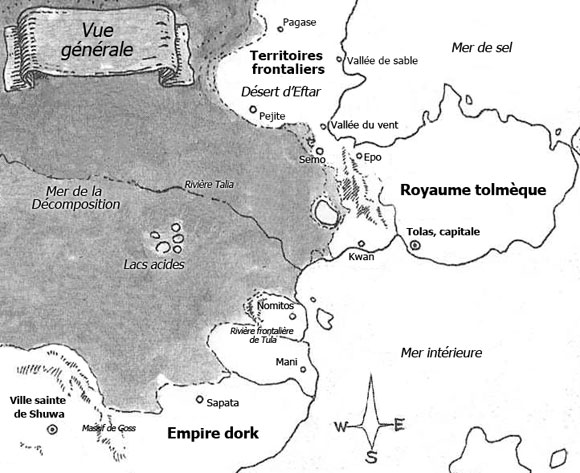 Le peuple de ce petit état frontalier de l’empire Tolmèque vit dans une vallée protégée des miasmes par le vent marin. Ils sont les descendants du peuple d’Eftar et en parle la langue. Ils sont alliés à l’empire Tolmèque mais restent autonome.
