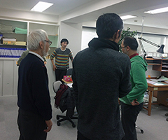 Le maître rend visite à ses anciens collaborateurs et Toshio Suzuki et Isao Takahata lors de la présentation privée du film.