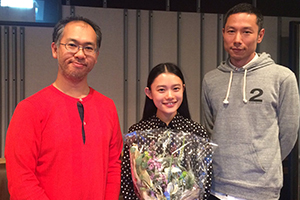 Photos de fin de doublage pour Hana Sugisaki et Ryûnosuke Kamiki.