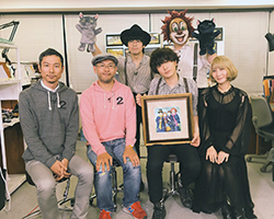 et le producteur Nishimura et Hiromasa Yonebayashi entourés des membres du groupe SEKAI NO OWARI.