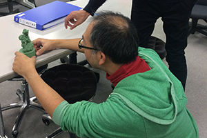 Contrôle du prototype d’une figurine par Yonebayashi, étonné du résultat. Le marketing a avancé parallèlement à la production du film.