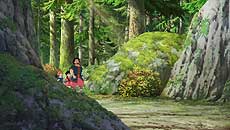 La mise en scène de Gorô Miyazaki, sans grand éclat particulier, mais il lui sera sans doute à jamais possible de passer derrière son père, et sa façon tellement personnelle d’habiter ses personnages, est appliquée, à l’image de la belle ellipse du passage de bébé à jeune fille de Ronya, jouant avec possibilité en matière d’ombrage du medium 3D (voir page making-of de ce dossier).