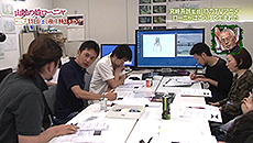 Au cours d'une réunion, Gorô Miyazaki donne ses indications aux animateurs.