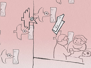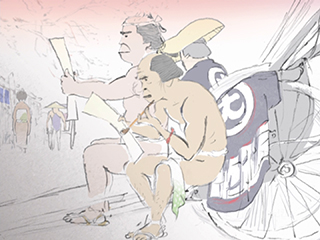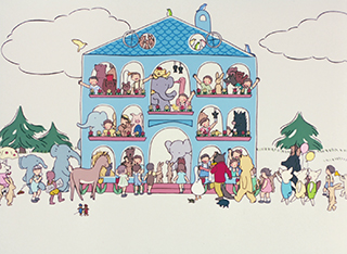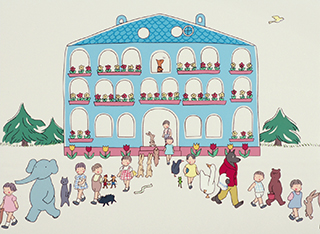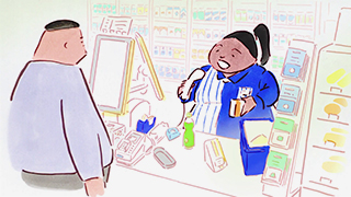 Publicité pour l’enseigne de konbini Lawson réalisée par Kunio Katô, auteur du court métrage Tsumiki no Ie (La maison en petits cubes) en 2008.