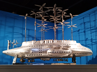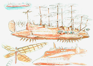 Le producteur du projet, grand fan du réalisateur, souhaite un design romantique du 19e siècle, une forme indentifiable mais capable de flotter dans le ciel. À sa demande, Miyazaki s’inspire des illustrations de Léon Benett pour Robur-le-Conquérant de Jules Verne. Ces recherchent préfigurent Le château dans le ciel en 1986.