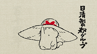 Publicité pour le 110ᵉ anniversaire du groupe alimentaire Nisshin Seifun. Basé sur un dessin de Toshio Suzuki, son style s'inspire de la technique de la calligraphie.