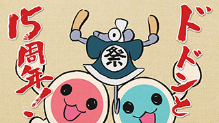Clip commémorant le 15ᵉ anniversaire des jeux vidéo de rythme Taiko no Tatsujin publiés par Bandai Namco Entertainment.