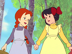 Anne devient vite l'amie d'une voisine de son âge, Diana Barry, qu'elle surnomme son « amie intime ». En revanche, elle développe une relation conflictuelle avec Gilbert Blythe, un garçon un peu plus âgé qu'elle et qui va dans la même école. Aussi doué pour les études que Anne peut l'être, Gilbert a eu l'outrecuidance d’appeler notre héroïne « Carotte », sobriquet que celle-ci ne peut supporter étant donné qu'elle est très complexée par la couleur de ses cheveux. Après lui avoir cassé une ardoise sur la tête, Anne décide de ne plus jamais lui adresser la parole. Elle finira plus tard par revenir sur sa décision... En attendant de nombreuses péripéties l'attendent car pour faire des bêtises, elle n'est jamais à court d'idées !