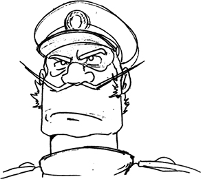 Souvent la fin justifie les moyens pour ce personnage qui use aussi de sa démagogie pour retourner sa chemise dès qu'il se sent menacé. Malgré cela, et même s'il est un peu lâche parfois, Dice a un bon fond. Il change de comportement et fait face aux événements en aidant Conan et Gimsy lorsqu'ils devront faire échouer les plans de Lepka. D'ailleurs Miyazaki fait du capitaine un des personnages les plus sympathiques de la série, à défaut d'être le plus irréprochable.