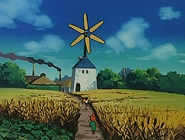 Miyazaki ne prône pas pour autant un retour à la vie paysanne, privée de tout progrès scientifique. Dans une scène clé du vingtième épisode, l'oncle de Lana conclut avec le grand-père à la nécessité de trouver une synergie entre les modèles contradictoire d'une société paysanne et industrielle.