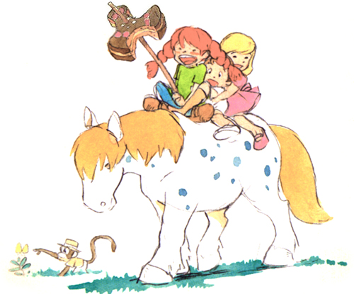En attendant ce jour, Fifi vit dans la villa Drôlederepos avec M. Nilsson, un petit singe, et un cheval qu’elle a acheté.