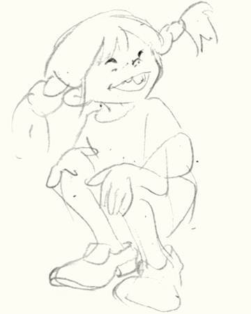 Inger Nilsson dans le rôle de Fifi Brindacier et un des multiples croquis signés Yôichi Kotabe pour le personnage.