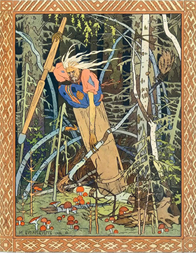 Ci-dessus, la Baba Yaga, personnage que Hayao Miyazaki revisitera avec le sorcière Yubâba du Voyage de Chihiro et celle apparaissant dans le court métrage M. Pâte et la princesse Œuf.