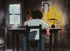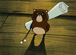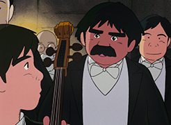 La troisième nuit, c'est au tour d'un petit tanuki de venir frapper à la porte. Son père lui a en effet conseillé d'aller voir le musicien pour apprendre à jouer du tambour en accompagnement du violoncelle. Gôshu se prête au jeu, mais très vite, les rôles s'inversent, et c'est finalement le tanuki qui lui prodigue des conseils. Le petit animal ne repart qu'à l'aube, remerciant Gôshu de tout cœur pour cette nuit de complicité musicale. Le jeune homme, quand à lui, est épuisé...
