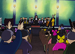 Le soir du concert, à l'hôtel de ville, les membres de l'orchestre reçoivent un tonnerre d'applaudissements pour leur exécution de la symphonie Pastorale. Le public acclamant l'orchestre et réclamant un autre morceau, le chef d'orchestre décide d'envoyer Gôshu. Pensant qu'on veut le ridiculiser, le jeune homme décide de jouer La chasse au tigre du Bengale qui avait tant effrayé le chat. Mais, à sa grande surprise, là encore c'est un triomphe !