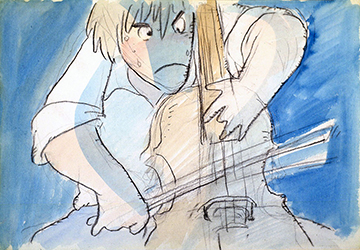 Au niveau de l'animation, la plus grande difficulté rencontrée par Saida a été de représenter correctement les musiciens. Le plus grand soin a été apporté à la gestuelle de Gôshu (notamment les doigts) et à la façon dont il répète. Afin de bien comprendre et assimiler le mouvement des instrumentistes, des virtuoses ont été filmé en train de jouer. Saida a ensuite appris les mouvements des doigts et les positions de l'archet avec un violoncelliste professionnel. « C'était difficile de dessiner en accordant tous ces paramètres avec la musique, surtout lorsque Gôshu joue seul, car à cet instant, les yeux des spectateurs sont braqués sur lui, ce qui interdit toute approximation. »