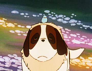 Personnages secondaires de l’histoire, Hercule, le chien gobeur d’escargots crus, porte lui aussi la marque d’une figure du bestiaire qu’affectionne Miyazaki : silencieux, lymphatique, adepte des efforts modérés, et uniquement vif lorsque la situation le nécessite. Il a toutes les caractéristiques de futurs personnages de la filmographie de l’auteur. On pense bien sûr à Totoro (dont Papa panda de Panda, petit panda est le prototype et dont la production vient juste de s’achever), mais aussi au chien présent dans Kiki, la petite sorcière, ni plus ni moins que le descendant direct du Saint-bernard de l’oncle de l’Alpe.