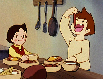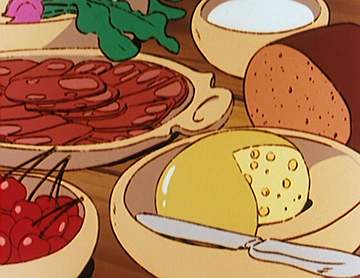Les épisodes sont ponctués de nombreuses scènes où les personnages partagent des repas. À travers le souci minutieux accordé à la représentation de la nourriture, mettant en valeur ses bienfaits, reflète déjà l'une des caractéristiques distinctives des films du futur studio Ghibli.