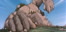 Horus, jeune garçon courageux, affronte seul une meute de loups. Au cours du combat, il perd sa hache. Trouvant refuge sur une roche et alors que la situation semble désespérée pour lui, le sol se soulève et laisse émerger de sous terre Mogue, le géant de pierre, qui met en fuite les loups.