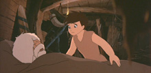 Horus se débarrasse du loup gris et, accompagné des villageois, poursuit Grunwald jusque dans sa tanière pour un ultime affrontement. Grunwald est terrassé par le soleil qui entre dans sa demeure. Le courage et la loyauté d'Horus sont salués par tous les villageois tandis qu'il brandit l'épée du soleil. Miraculeusement sortie de la tempête vivante, Hilda est accueillie par Horus, Mogue et tous les villageois.