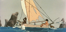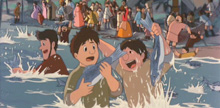 A son retour au village, les villageois restent incrédules et ne croient pas un instant que le jeune homme ait pu réussir là où le plus brave d'entre eux a failli. Le plus déçu est Flip qui espérait pouvoir grandir et devenir suffisamment fort pour venger son père. Mais les affirmations d'Horus sont bien vite vérifiées lorsque les saumons reviennent nager dans la rivière. C'est en parallèle à ces événements que Koro arrive enfin au village et retrouve Horus.