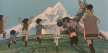 Tandis que la résistance s'organise au village autour de Ganko et Pottom, Horus, qui a pris le dessus sur ses questionnements, sort de la forêt. Il veut réunir les hommes et se battre. Pour cela, l'épée du soleil doit être forgée par leurs efforts conjoints, les réunir et les guider pour vaincre Grunwald. C'est également le moment de la rédemption pour Hilda. Elle offre sa médaille de vie à Flip et Koro et les sauve de la tempête de neige. L'épée forgée, Horus se dresse devant Grunwald tandis que Mogue vient s'acquitter de sa promesse et se joint à la bataille.