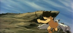Qu'en est-il au final ? Malgré ces réajustements historiques qui doivent être pris en compte et la bonne volonté affichée par Takahata et son équipe, le film ne parvient pas vraiment au niveau de ses (trop ?) grandes ambitions pour l'époque. D'un point de vue technique, Horus, prince du soleil est un film de qualité malgré ses deux séquences, souvent décriées, faites de plans statiques, lors de l'affrontement des villageois contre les loups puis contre les rats. Cette spécificité de coté, l'animation est de qualité et le film rythmé (voir la première séquence d'affrontement entre Horus et les loups ou contre le brochet géant).