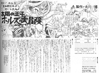 La production d'Horus, prince du soleil, 10ᵉ long métrage de la Tôei Dôga, commence en 1965. C'est est un pari difficile à l'époque, Takahata et son équipe sont jeunes et manquent d'expérience mais ils souhaitent néanmoins innover et trouver de nouvelles techniques pour dépasser leur savoir-faire. Comme expliqué précédemment, ils veulent que le projet soit le film de la rébellion contre la direction de l'époque. Ils souhaitent que ce projet soit plus qu'un film d'animation mais un vrai film. Ils se donnent donc beaucoup de mal, avancent de manière laborieuse, s'arrêtant à chaque détail.