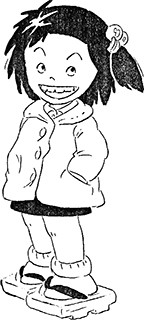 Petite fille débrouillarde, volontaire et responsable. Quand on fait sa connaissance, au début du film, sa situation familiale est un peu compliquée. Sa mère a quitté le domicile conjugal et elle vit seule avec son père. Elle refuse de l'appeler « papa », lui préférant « Tetsu », afin de lui signifier son mépris. Elle préférerait vivre avec sa mère et avoir une vie normale mais ne peut pas se résigner à abandonner son père irresponsable, ainsi que le restaurant familial.