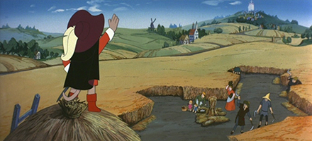 Yabuki a tout d’abord dessiné un storyboard approximatif. Puis avec Mori, ils ont affecté les animateurs principaux à chaque séquence. C’est ainsi que ce storyboard grossier a été divisé et que Mori s’est occupé de la séquence musicale où Pierre et Pero partent sur les chemins ensembles en chantant et dansant. Ôtsuka a pris la séquence de transformation de Lucifer et se retrouve à animer à nouveau un dragon après celui de Le prince garnement terrasse la grande hydre.