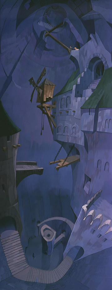 Yôichi Kotabe, la séquence où Lucifer attend la princesse et Miyazaki a pris la séquence de poursuite finale. Une fois que toutes les séquences furent assignées, chaque animateur dessina un storyboard et c’est alors que Yabuki sélectionna ceux qu’il voulait garder pour en faire le storyboard final.