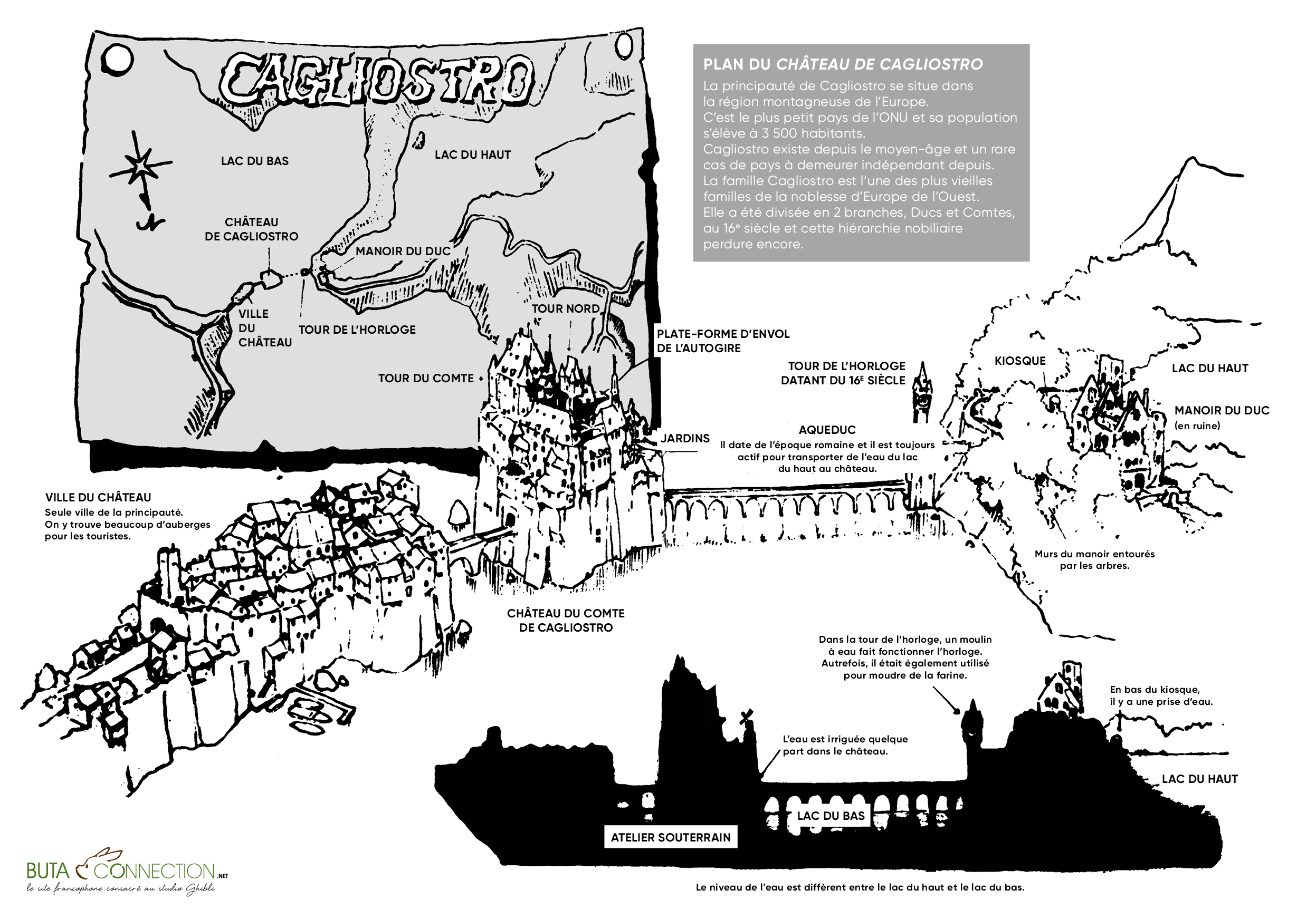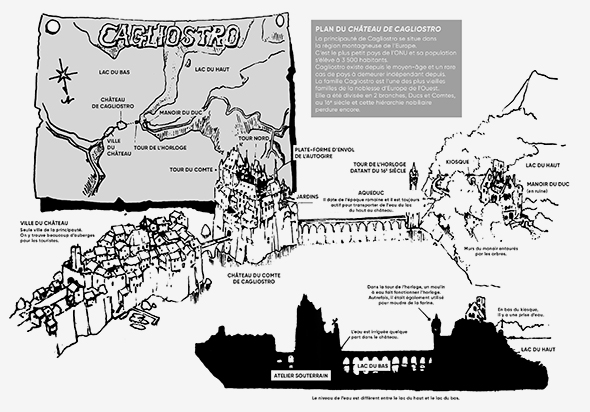 Plan du château du comte de Cagliostro dessiné par Miyazaki et localisé en français.