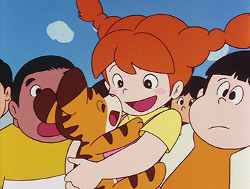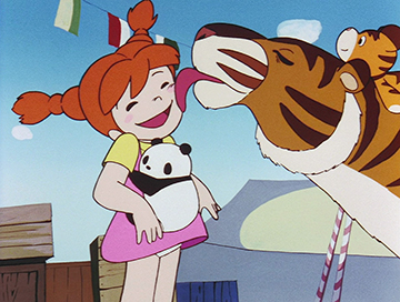 Pendant ce temps, le directeur du cirque n’est pas parvenu à récupérer le panda. Pire, le tigre a saisi Pandy dans sa gueule et est sortie de la cage laissée ouverte. Il se retrouve nez à nez avec Mimiko sous les yeux terrifiés des employés et des enfants. Les deux se regardent un moment puis devant le sourire de Mimiko, le tigre lâche Pandy qui court s’accrocher à la petite fille. Comme s’il s’agissait d’un échange, Tigry se précipite vers le tigre qui n’est autre que sa maman. Mimiko et la tigresse s’échangent des léchouilles et tous quatre rugissent de plaisir.