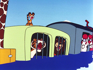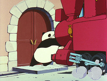 Pendant ce temps, Pandy et Tigry visitent la locomotive. Ils réalisent qu’elle n’a pas été inondée et décident d’alimenter la chaudière avec du charbon. Le train repart alors, fendant l’eau. Mimiko n’est pas rassurée de voir le train rouler, mais ne parvient pas à l’arrêter. Bientôt, le train s’enfonce dans l’eau pour ressortir devant les employés du cirque, médusés. Mais le train continue sa course, maintenant poursuivi par une voiture.