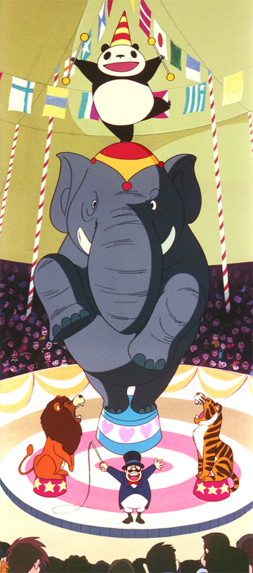 Le lendemain matin, elle emmène donc Pandy et Tigry faire des courses. Sur le chemin, alors qu’elle s’éloigne d’eux un instant pour poster une lettre, Tigry suivi par Pandy court poursuivre un train passé à proximité. Mimiko ne les a pas vus s’en aller et, inquiète, part à leur recherche en ville. Là, elle apprend qu’un cirque est arrivé par le train et s’est installé. Elle s’y rend pensant qu’elle a une bonne chance d’y trouver Pandy et Tigry.