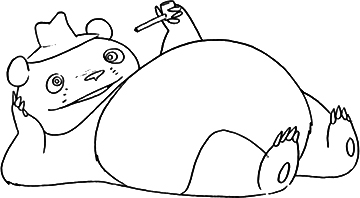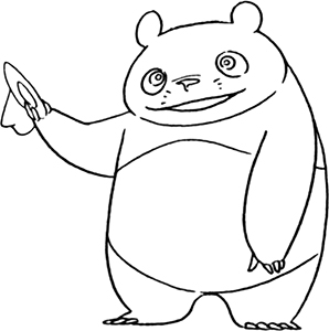 Il est toujours un peu dépassé par les événements. Aussi, à la fin du récit, alors que le train qui transporte tous ses animaux se retrouve immobilisé par l’inondation, il a besoin de l’intervention de Mimiko et de Papa panda pour se sortir de ce mauvais pas.