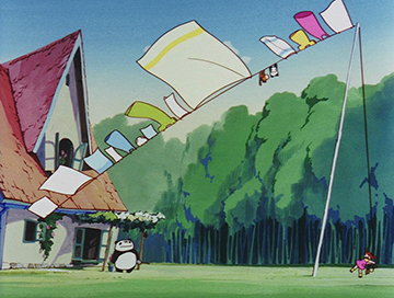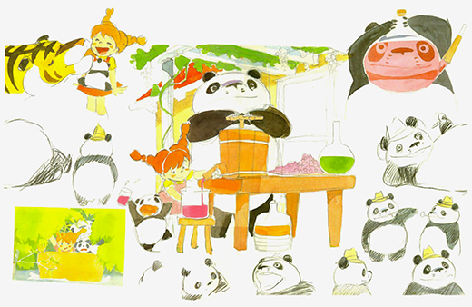 Au sein d’A Pro, la production du projet précédemment ignoré est alors relancée en urgence. Des années plus tard, en repensant à la mise en route de ce projet, Hayao Miyazaki ironisera : « Nous avons écrit la note d’intention en une nuit et n’en avons plus entendu parler pendant quelques mois après l’avoir soumise. Quand j’ai entendu cette nouvelle à la radio que des pandas arrivaient en provenance de Chine, j’étais sûr qu’elle serait approuvée. Tout comme je l’espérais, le projet a été immédiatement mis en chantier. À cet égard, ce projet surfait sur la vague du boom des pandas. Personnellement, quand j’ai lu le texte de la note d’intention que Isao Takahata avait écrit à la va vite, j’ai senti mon cœur se gonfler d’espoir car c’était l’occasion pour moi de créer un monde merveilleux. L’excitation est restée intacte sans se dissiper, je n’avais aucun scrupule à exploiter le boom des pandas. »