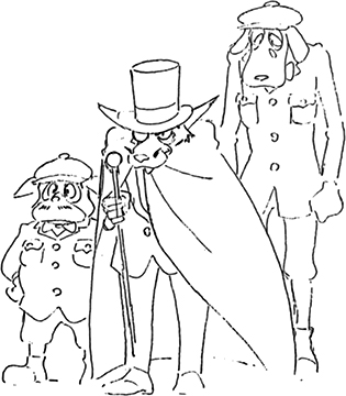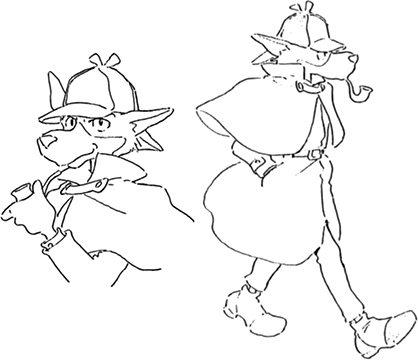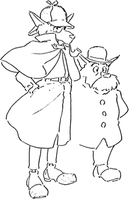 Sherlock Holmes est un détective britannique vivant au 221b Baker Street. Il a l’apparence d’un renard, et semble âgé d’une trentaine d’années. Toujours affublé d’un trench coat, d’un deerstalker et d’une pipe, il ne se déplace qu’à bord de sa petite voiture.